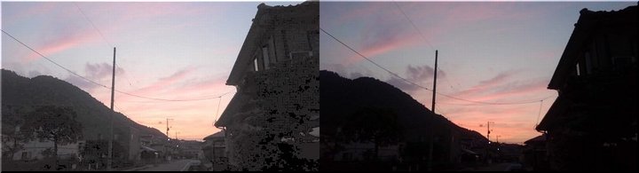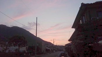 そぅしましたら、我が家西方の沼南アルプス越えに扇状に広がります夕焼け雲が…