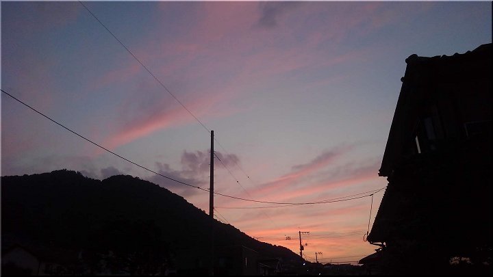 我が家に帰還致しますと、いつものように、まずは我が家の前で一服です。一服しながら空を見上げますのもいつも通り(^.-)☆