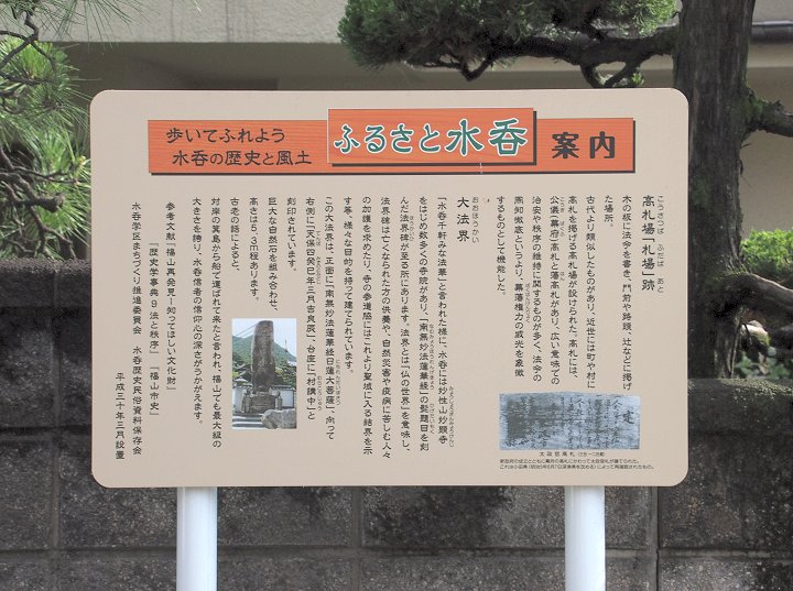 帰路、法界碑まで下りて来ますと、法界碑脇に「水呑の歴史と風土案内」表示板が…