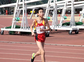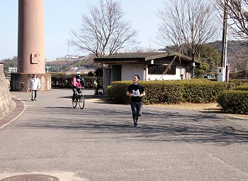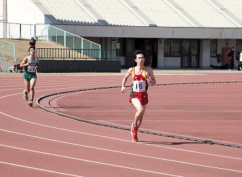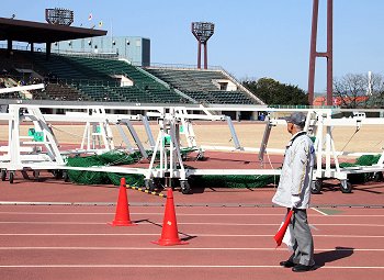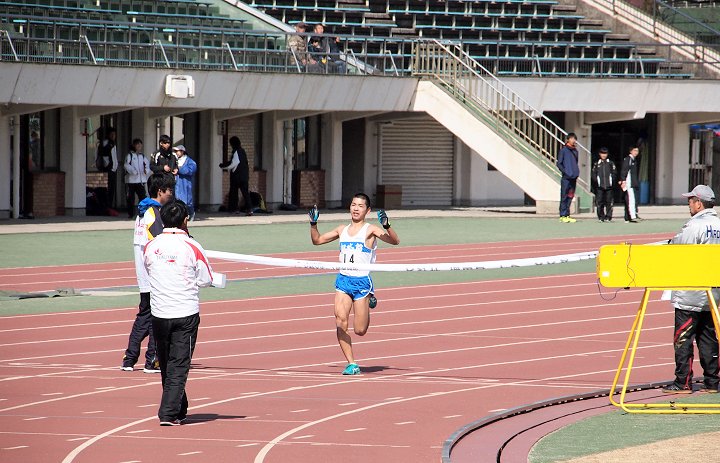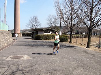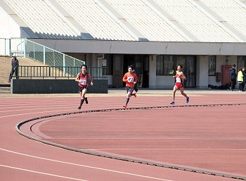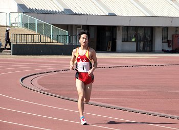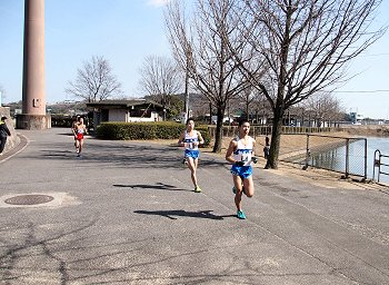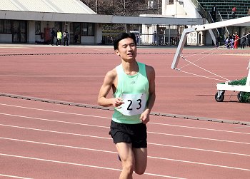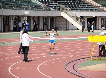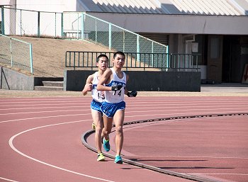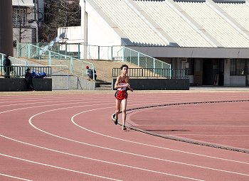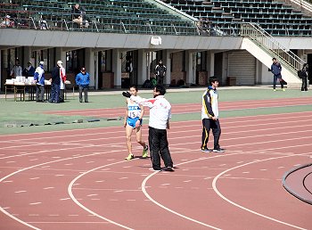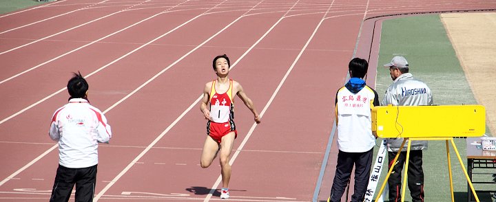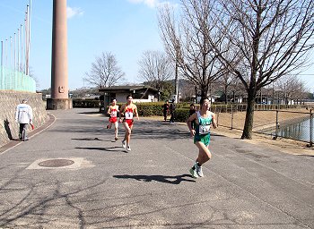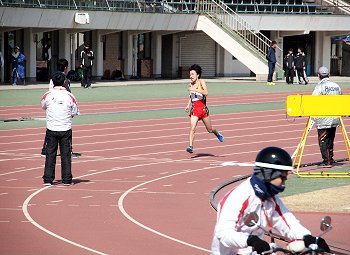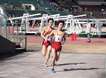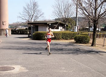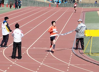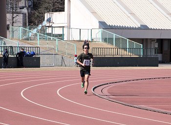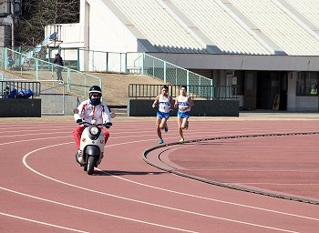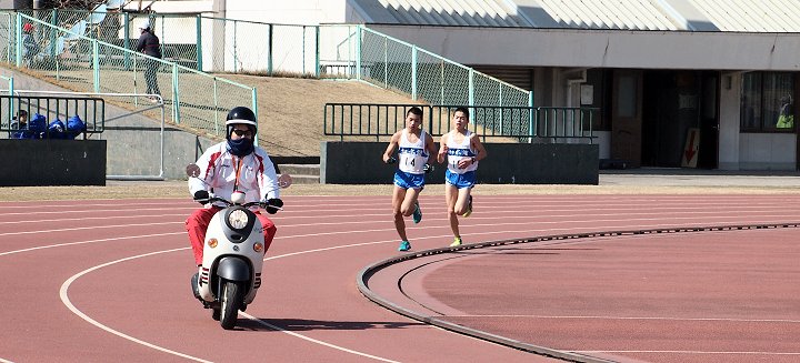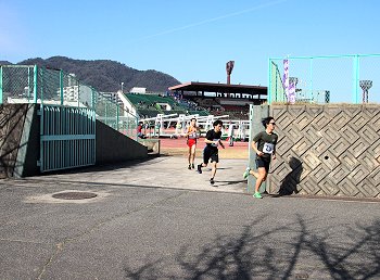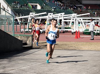 最後尾の選手が陸上競技場外へと出ていきましてから間もなく、トップのお二人が速くも競技場内へと戻って来ました。