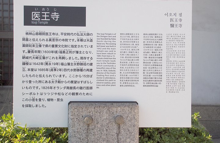 医王寺から15分ばかり登った所にある太子殿からの展望はすばらしいものです。1826年オランダの医師シーボルトはツツジや松の観察のため小径を登りました。