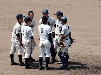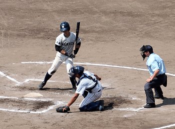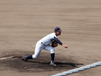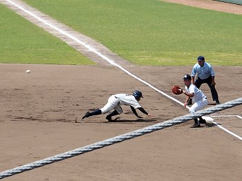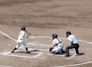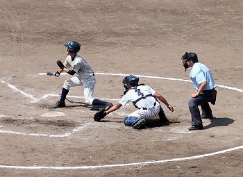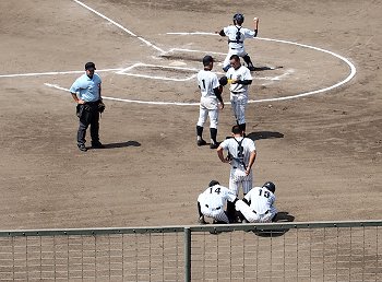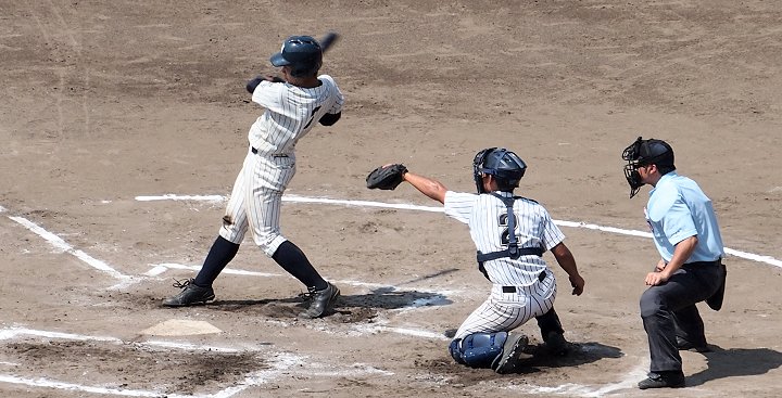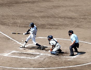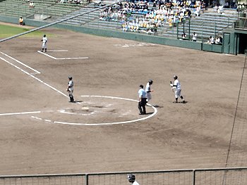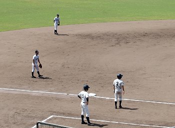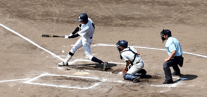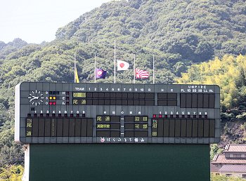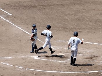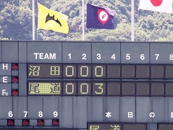 2回までは互角の両校の展開でしたけど、まず先行しましたのは尾道高校。3点先取。