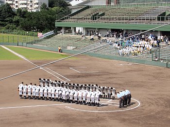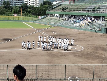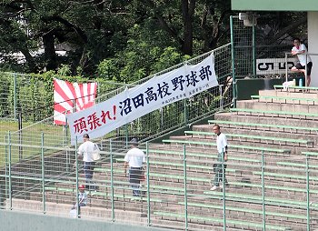 A.M.9:30に我が家を出まして球場に到着。バックネット裏の定位置に座りますと、沼田高校の皆様が練習中。