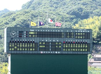 スコアボードに眼を向けますと、凡て半旗が掲げられておりました。先の記録的な西日本豪雨で広島県内では大きな被害がありましたから…