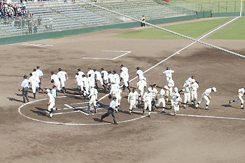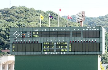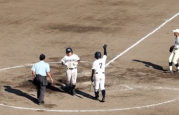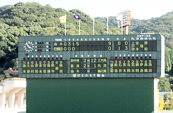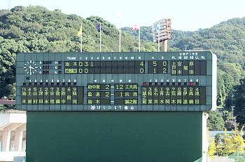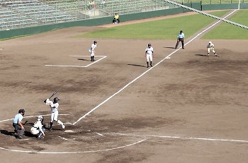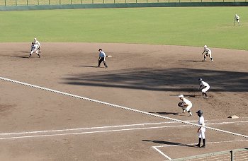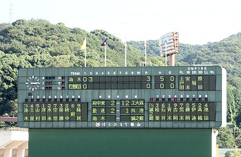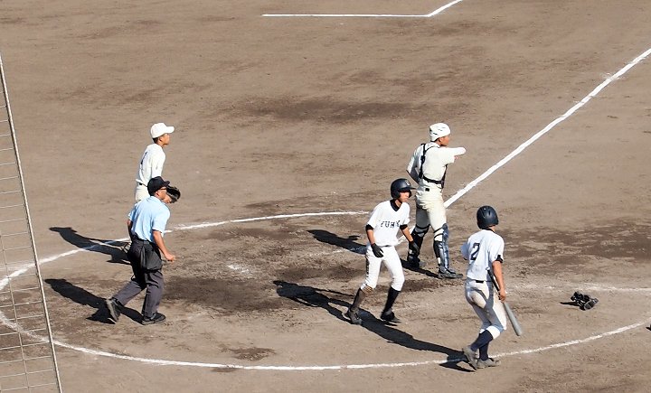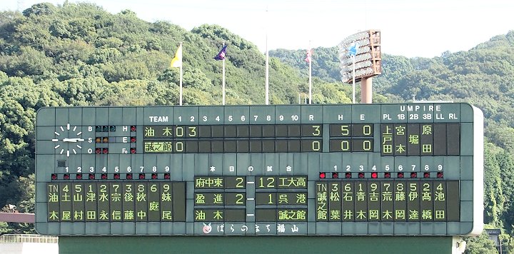1回は両チームとも無得点でしたけど、2回の油木高校、そつの無い攻めで3点先取。う〜ん、地元・誠之館に頑張って貰いたい気持ちですけど、何となく油木高校の方に勢いがありますような…