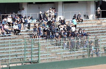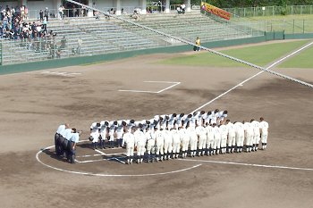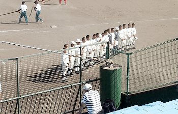 バックネット裏に戻りますと、タイミング良く、今から試合が始まろうとしておりました。先攻は油木高校。