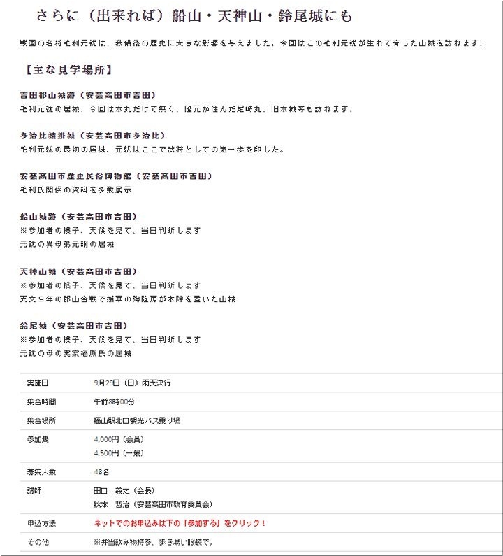 9/29(日)は、「備陽史探訪の会」主催のバス例会で「吉田郡山城&多治比猿掛城」の山歩きに参加のGONsanでありました(^.-)☆