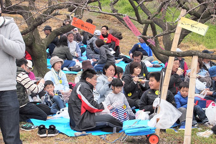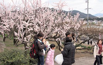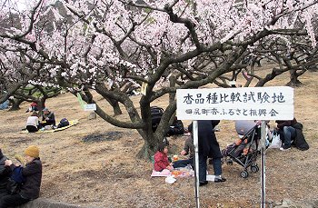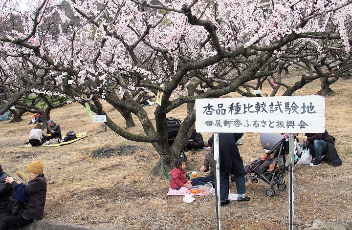 「杏品種比較試験地」まで戻って来ますと、さすがに此処は賑わっておりました。