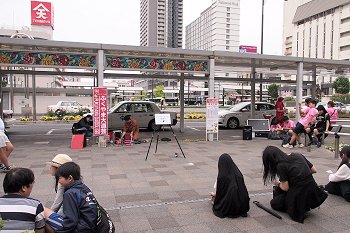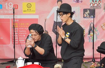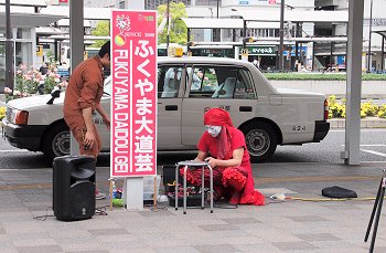 アイネスフクヤマでは、「ゼロコ」sanの大道芸を少し拝見し、足は福山駅前へ…