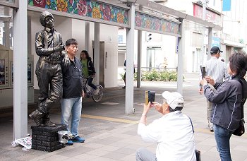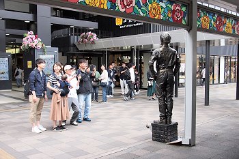 福山駅南口では、いきなりスタチューの芸が眼に入りましたネ(^.-)☆