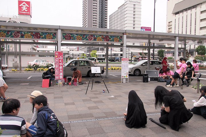 今まで「福山ばら祭」では、じっくりと大道芸を楽しみます事はありませんでしたので、今回は大道芸を楽しんでみよう…と、こんな気持ちで、5/18(土)はP.M.1:00過ぎに我が家を出まして、まずは福山駅南口行きとなりました(^.-)☆