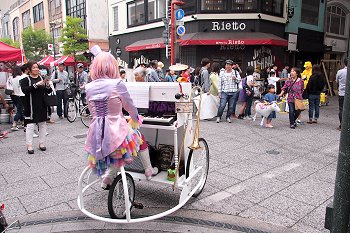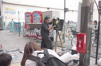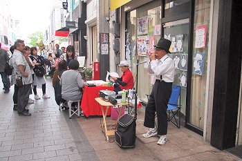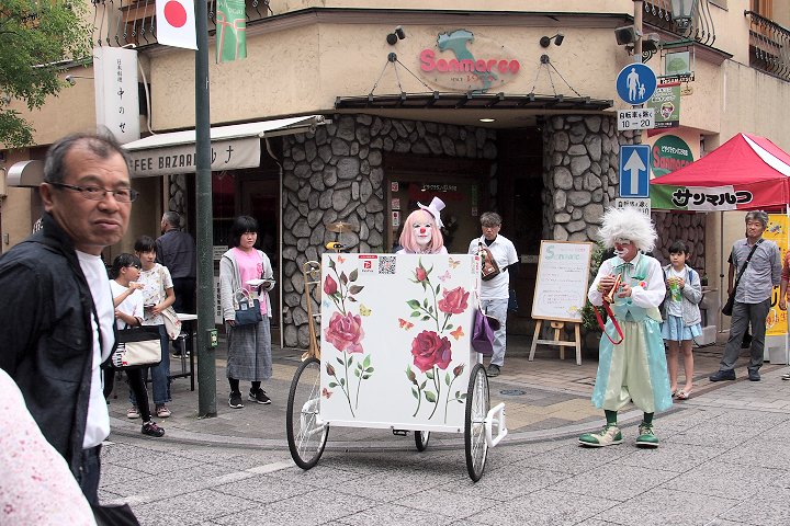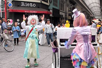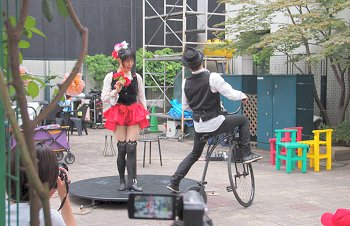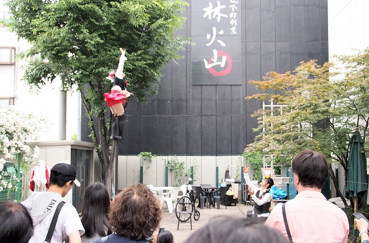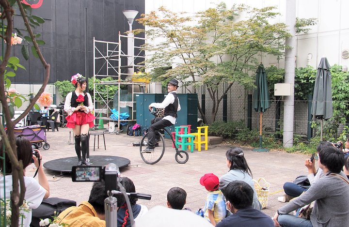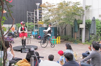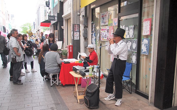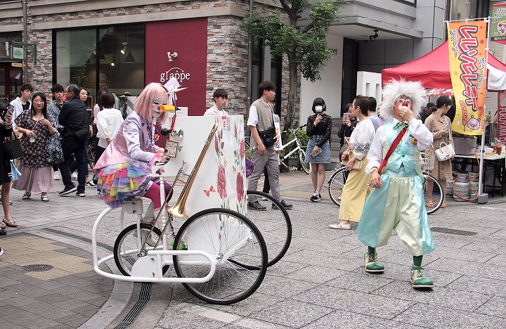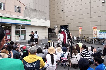 久松通りと霞プロムナードの交差箇所でも大道芸が…