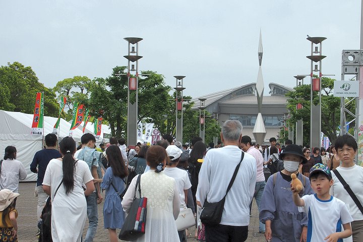 いつものように、わざわざ歩道橋を渡りJA福山の駐車場内の景観をパチリ。ステージで何かしておられましたら立ち寄ろうかと思っていたのですけど、この時間帯には特に何にも…スルーとなりました。