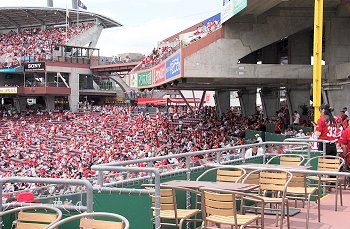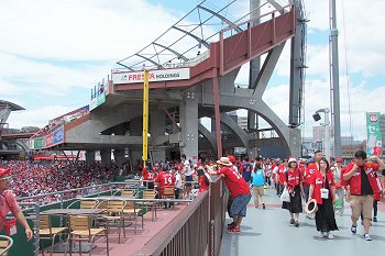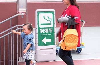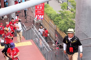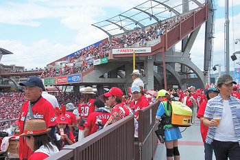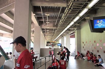 レフト側外野席付近に近付きまして、GONsanは一服です。何も考えずに新幹線側に片隅に向かいますと、喫煙コーナーがありません(^-^;