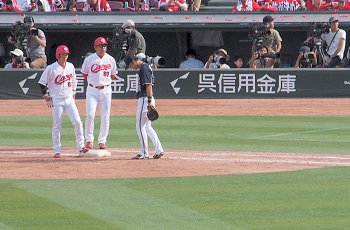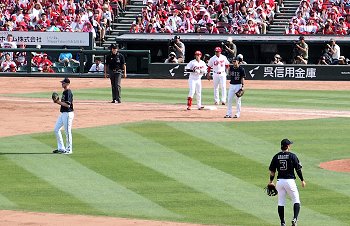 で、10回表のオリックスの攻撃ですけど、う〜ん、ピンチを迎えました広島東洋カープ。先取点を奪われますかも分かりませんねぇ〜