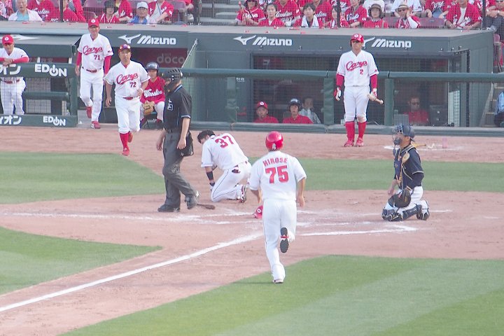 10回裏 鈴木 2アウト満塁の1-2からタイムリー内野安打 広3-9オ 1、3塁