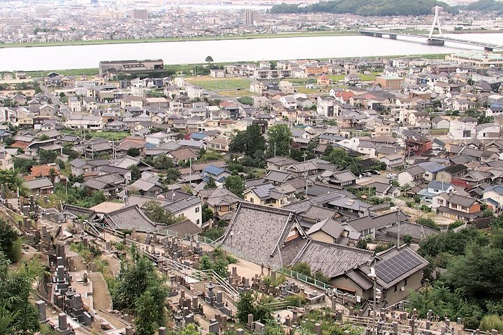 読経を終えますと、いつものように眼下の我が町を眺望です。こぅして見下ろす度に農地の減少が眼についてしまいます。