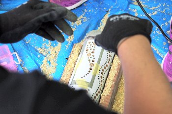 ふ〜ん、竹に貼られた原図にそって大小様々な穴をあけますようですネ。GONsanの職場の倉庫の一角で、毎年、12月に入りますと、商工会議所関係者の皆様が、こんな作業をしておられます。
