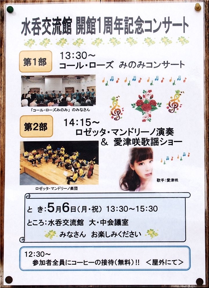 5/6(月・祝)は、水呑交流館開館一周年記念コンサートの開催でした(^.-)☆