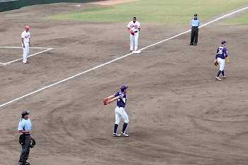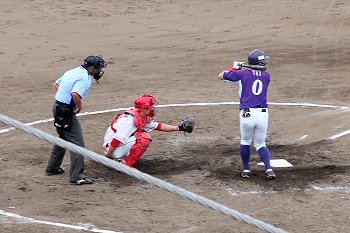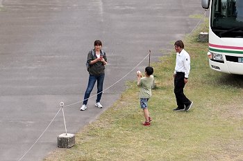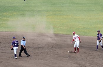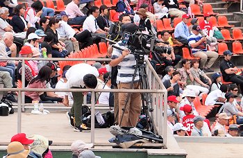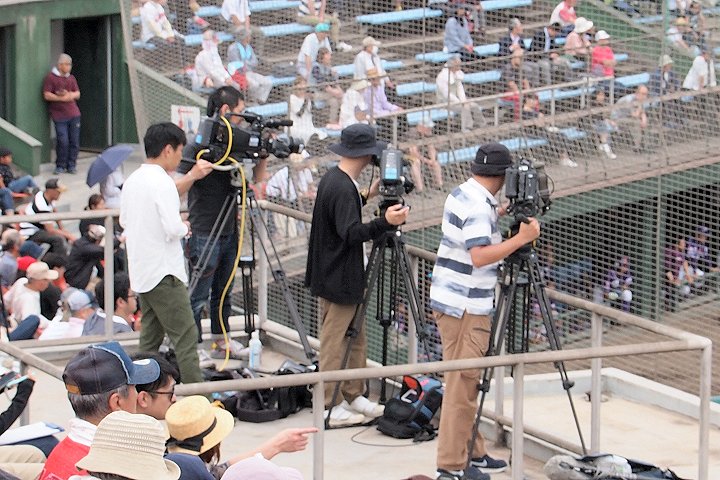 にも関わらず、ネット裏では3名のカメラマンが試合の様子を熱心に映像に納めておられます。が、時たまカメラを変な方向に…