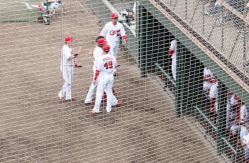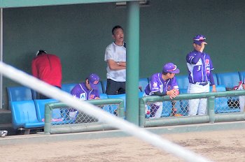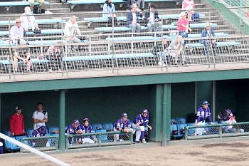 でも、ダッグアウトには、特に被写体とされます方はおられないように思うのですけど…(ローズファイターズの選手の皆様には失礼なんですけど…)