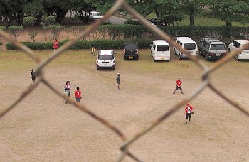 球場外に眼を向けますと、相変わらずチビッコ達がファウルボールを狙っておりますネ(^.-)☆