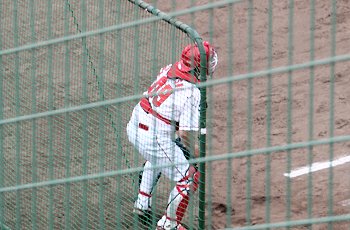 この光景を眼にします度にGONsanは不思議に感じますのですけど、どなたを撮っておられますのでしょうねぇ〜この感じですと、どぅ見ましても、福山ローズファイターズのダッグアウトにカメラを向けておられますのですけど…