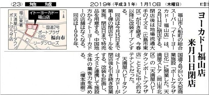 いつでしたか…めったに出掛けません「イトーヨーカドー福山店」sanに出掛けましたら、入口に閉店する旨の表示がありました。