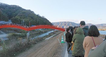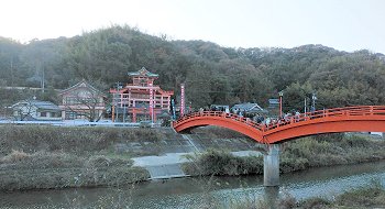 芦田川河川敷に車を駐め、法音寺橋を渡り草戸稲荷にと向かいます。