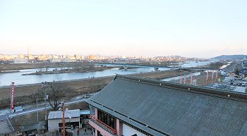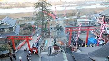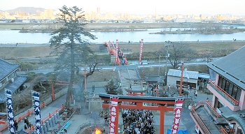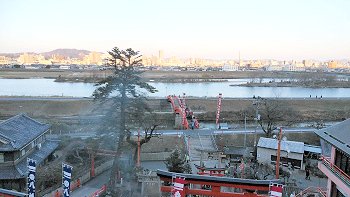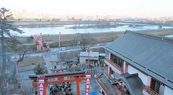 本殿に参拝後は破魔矢・お守りを求め、後は少し本殿上から眺望です。