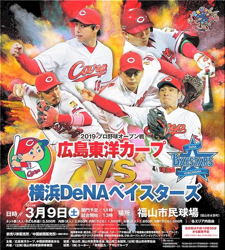 2/1(金)のキャンプインも目前となって来ましたけど、早々とオープン戦の案内が…ふ〜ん、今年の福山でのオープン戦は、3/9(土)ですか…
