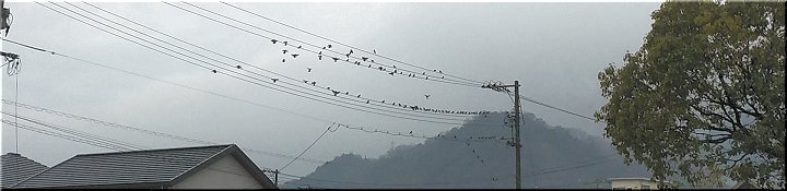電線にはスズメの群れが留まっておりました。雨上がりでもありますから、寒いでしょうねぇ〜