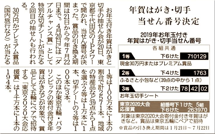ふ〜ん、今回は、二度チャンスがありますようですネ。なら、未使用年賀ハガキも、このまま暫く持っています事に致します。