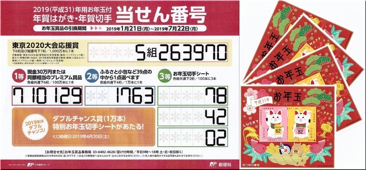 ところで、毎年、お年玉切手シートは6〜7枚程度当選するのですけど、今回は4枚のみ(^-^;