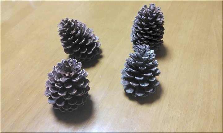 勤務を終え帰宅しますと、食卓の上に松ぼっくりが…