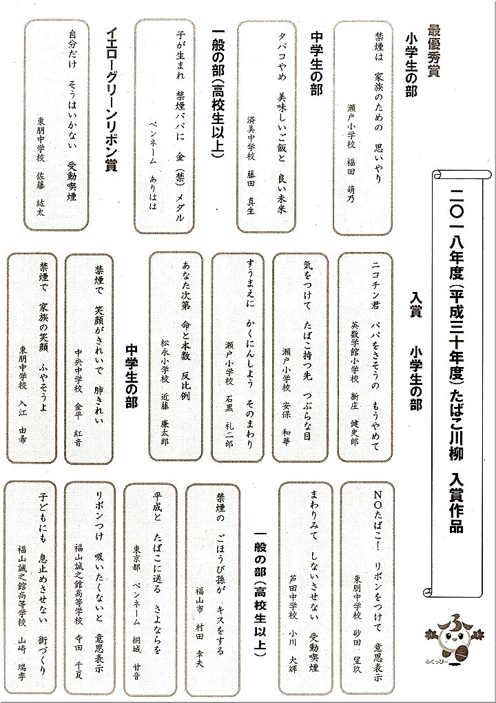 「禁煙支援講演会」は、定刻・10:30に開始となりまして、まずは「たばこ川柳表彰式」。