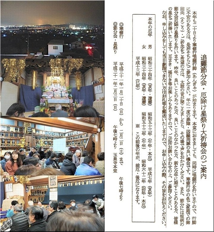 2/3(日)の夜は、帰宅が遅くなるかも分かりませんでしたけど、孫達連れて、お寺の「節分会・星祭り」に参加となりました(^.-)☆