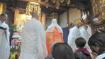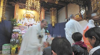 定刻に開始で読経・祈祷…と進み、ヤッと孫達お待ちかねの豆(お菓子)まきです。