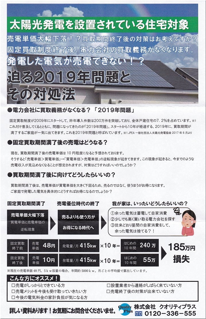 最近、ソーラー発電関連で色んな案内が届きますのですが…