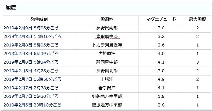 出勤前の、2/5(火)A.M.7:30に地震雲らしき雲を眼にしましたので、この雲に直角線方向と言いますと鳥取か宮崎方面。で、以降は毎日、地震情報をチェックのGONsan。