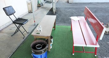 建物脇のテントの下に、チャンと喫煙場所が(^_^)v