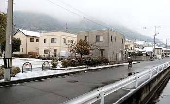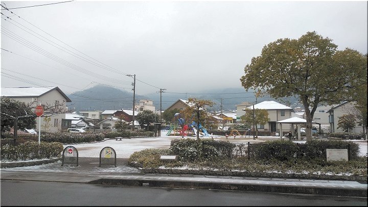 既に小雨に変わっておりましたけど、明け方近くに降雪がありましたのでしょうか…早速、数枚周辺の景観をパチリとなりました。