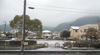 今日も少し寝坊しまして、起床は、A.M.7:40でしたでしょうか…昨夜も今朝も、そんなに寒いとは思いませんでしたけど、嫁さんの「雪が積もってる…」の声で外に出てみますと、うん、うん、今冬初めての雪景色でありました(^.-)☆