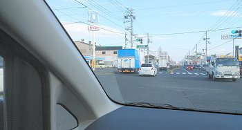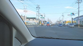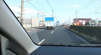 我が家を出まして間もなく赤信号で信号待ちをしておりますと、交差点近くのコンビニからトラックが出て来まして先行です。