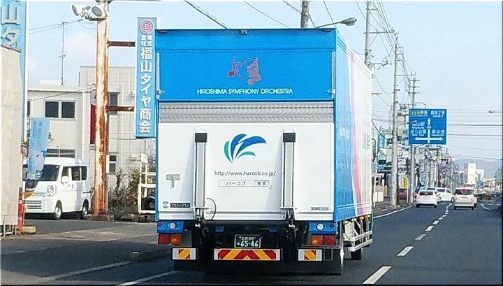 何気なくトラックに眼を向けますと、車体に『Hiroshima Symphony Orchestra』の記載です(^.-)☆