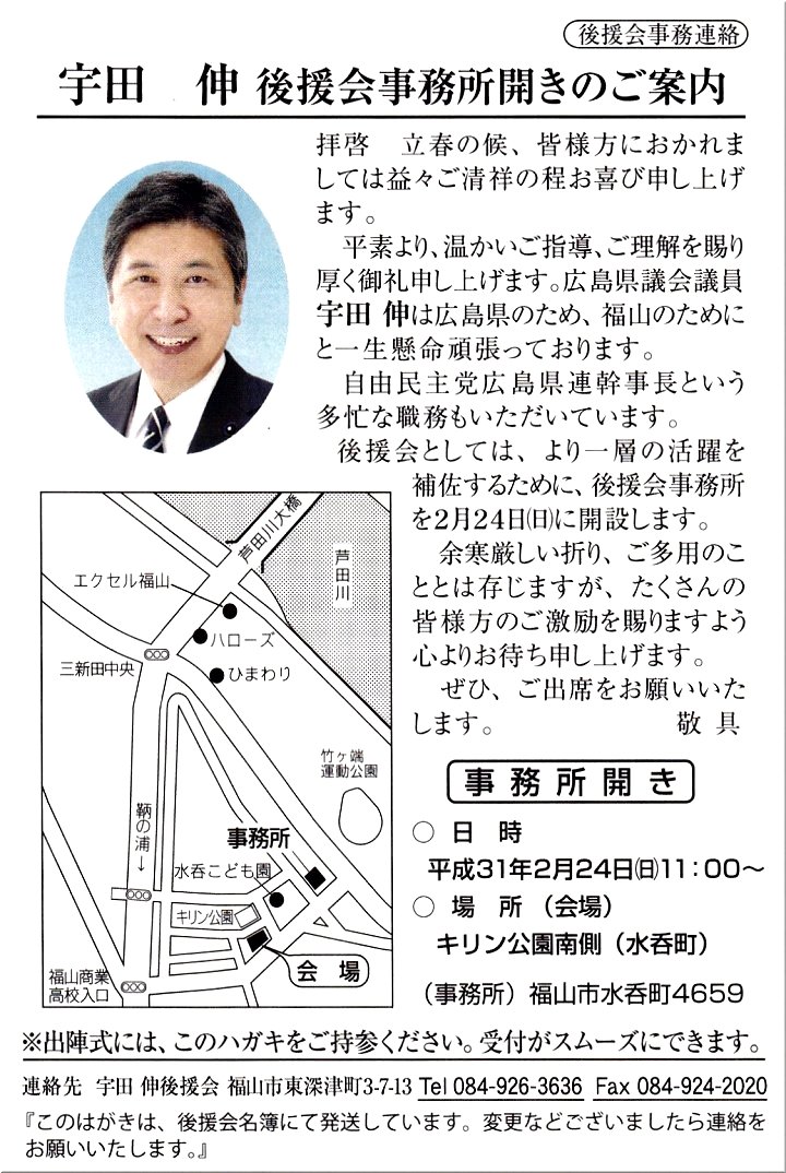 先週のいつでしたか…地元・県議先生の後援会事務所から、こんなご案内が届いておりました。