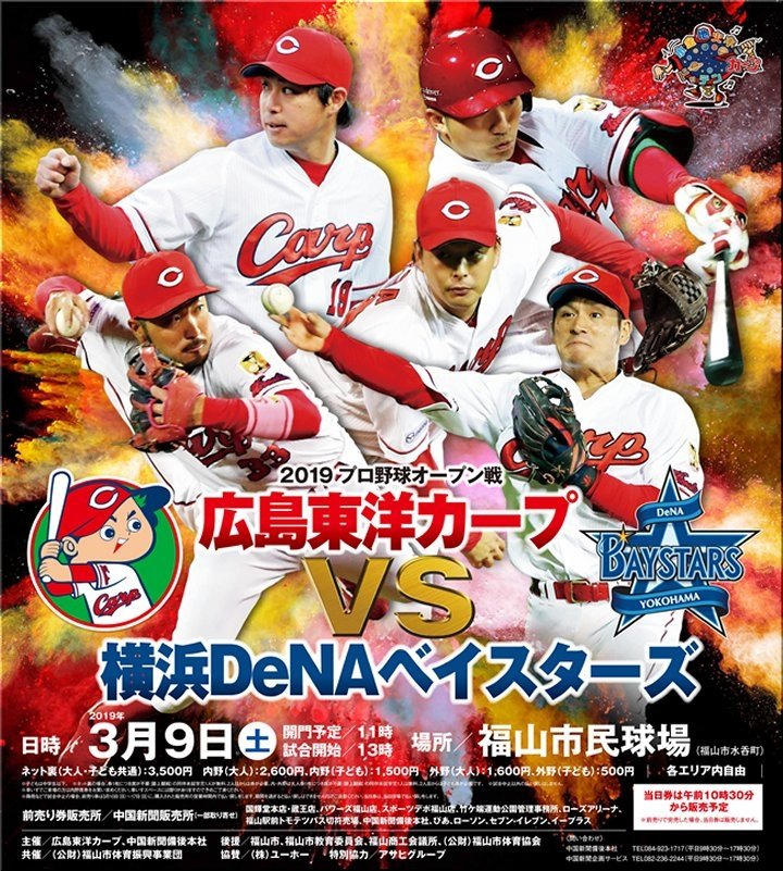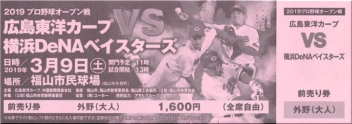 ・3/9(土)に福山市民球場で開催されるオープン戦「カープ vs DeNA」戦チケットが本日1/16(水)発売