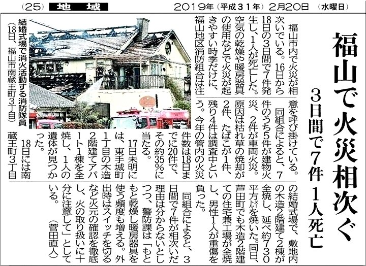 福山市内では3日間で7件の火災が発生していますようですから、注意喚起の意味合いもあるのかも分かりません。