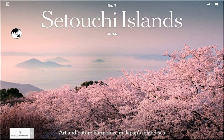 そぅ言えば、1月の中旬でしたか…米有力誌ニューヨーク・タイムズ「2019年に行くべき52ヶ所」の7位に「瀬戸内の島々」が選出されていましたようですネ。