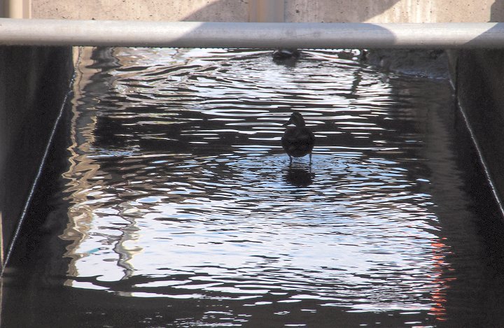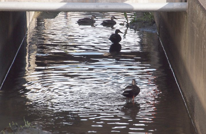 用水路を覗き込みますと、6羽のカモsan家族がノンビリと歩いておりました。水の中を歩いています音でしたようです(^-^)